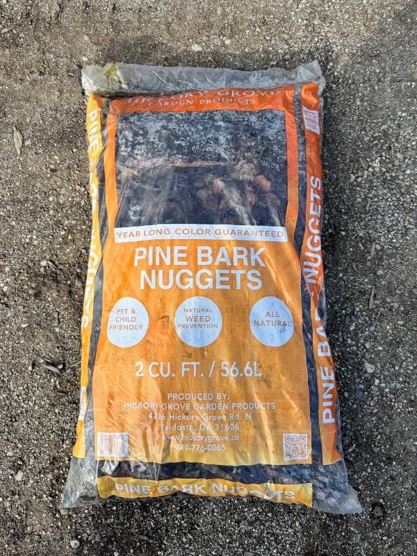 Our Pine Bark Nuggets Mulch is made up of 100% bark that is medium brown in color. The nuggets are large pieces of tree bark - the size of a medium leaf - that provide excellent soil coverage. Over many years, it will naturally mix into your flower beds and you won't be left with chucks of pallet or wood.