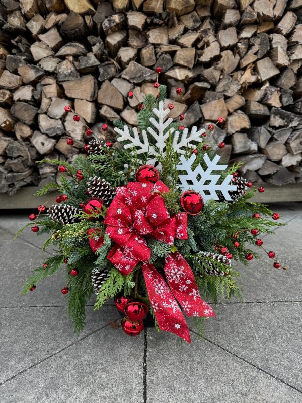 Bring your friends, drink a glass of wine (or two) and join us for a holiday porch pot workshop where you'll decorate a fresh evergreen pot for your front steps or for your holiday centerpiece. At this class, you’ll decorate your live greens arrangement that has been handmade for you. We offer the porch pots in three different sizes: 8" (perfect as a centerpiece), 10" and 12" (ideal for your entryway). Our decorators help you make design decisions and give ideas on how you can make your porch pot perfect for your home. A custom bow is made for you and we teach you how to adhere your embellishments to the porch pot. All the tools needed to decorate your porch pot will be provided.