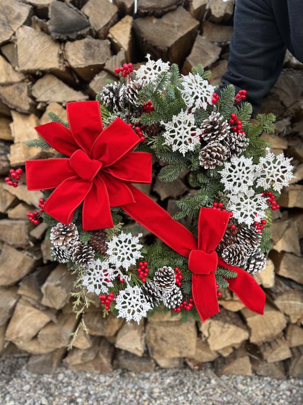 Join us for an evening of wine and decorating! Embellish a fresh or artificial wreath with berries, a bow and more for the holiday season. You will pick out a wreath for inside or outside your home and then the fun begins! Our expert decorators will help you make design decisions and give ideas on how you can make your wreath perfectly tailored to your home and style. A custom bow will be made for your wreath. We will teach you how to adhere embellishments to the wreath and create a wreath you'll love.