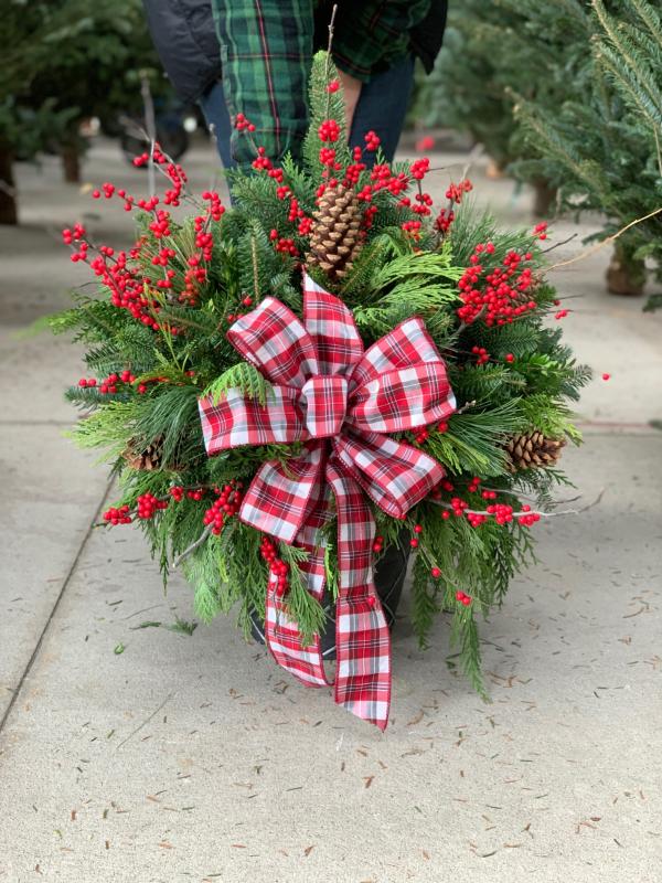 Bring your friends, drink a mimosa (or two) and join us for a holiday porch pot workshop where you’ll decorate a fresh evergreen pot for your front steps or for your holiday centerpiece. At this class, you’ll decorate your live greens arrangement that has been handmade for you. We offer the porch pots in three different sizes: 8″ (perfect as a centerpiece), 10″ (comes as a hanging basket or pot drop-in) and 12″ (ideal for your entryway). Our decorators help you make design decisions and give ideas on how you can make your porch pot perfect for your home. A custom bow is made for you and we teach you how to adhere your embellishments to the porch pot. All the tools needed to decorate your porch pot will be provided.
