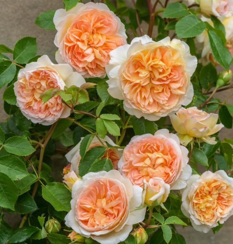 Climb into color, scent, and drama with 'Bathsheba', one of the most beautiful English climbing roses. Big blooms open in a glow of apricot‑pink and soft yellow, creating a warm, luminous display that really pops on a trellis, arbor, or fence. This vigorous climber shines with repeat blooms from late spring through fall, and its rich myrrh‑honey‑tea fragrance fills the garden every time it blooms. Whether you want vertical interest, fragrant pathways, or stunning blooms for cutting, 'Bathsheba' delivers bold beauty without extra fuss.